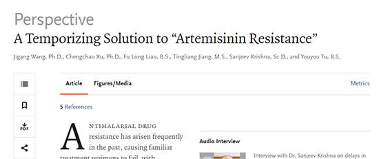 该论文标题为《“青蒿素耐药”的应势解决方案》(A Temporizing Solution to “Artemisinin Resistance”),论文一共有六位作者,分别为中国中医科学院青蒿素研究中心和中药研究所特聘专家王继刚研究员、Chengchao Xu博士、廖福龙研究员、姜廷良研究员、Sanjeev Krishna教授和屠呦呦研究员。其中王继刚为论文主笔。