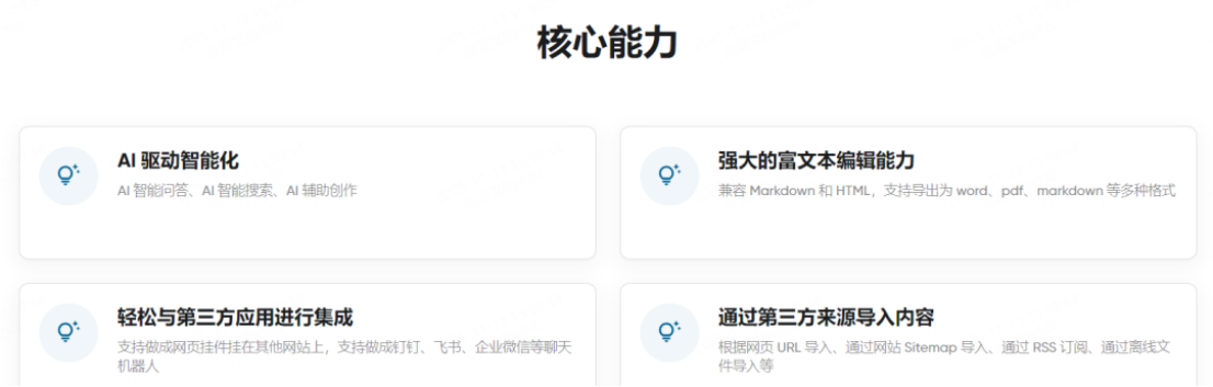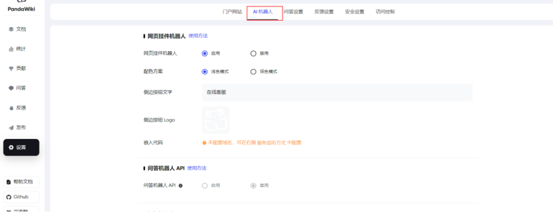 PandaWiki是一款开源的在线AI知识库,AI驱动的开源知识库系统,可以帮助个人,企业快速构建产品说明书、技术文档、FAQ,提供智能问答,智能搜索,智能客服等能力。