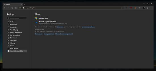 在微软最近添加的所有新功能中,黑暗模式的改进尤其值得注意。微软Edge Canary频道版中的黑暗模式现在更加一致,你现在可以在浏览器的“设置”,“历史记录”,“下载”和“收藏夹”页面中找到它。以前,黑暗模式仅在flag页面上可用。