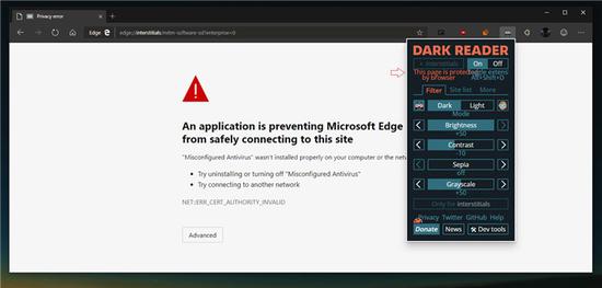 但是,这项工作还没有完成。由于微软Edge浏览器的警告空间页面尚未进行黑暗模式处理,因此仍存在不一致的情形。