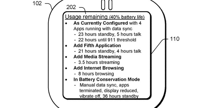 该专利可以让你的设备测量电池电量,然后根据各种情况提供使用时间,从而使用户可以自定义优化使用情况。