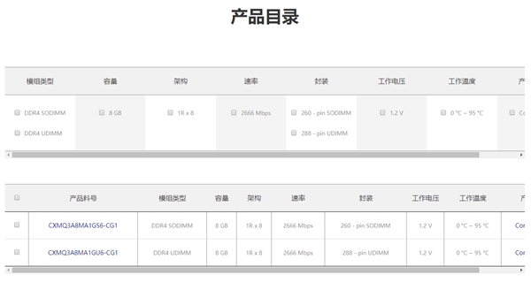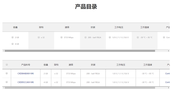 长鑫存储官方网站上,已经公开列出了自家的DDR4内存芯片、DDR4内存条、LPDDR4X内存芯片,都符合国际通行标准规范。