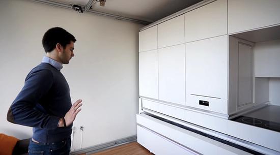 据宜家介绍,这套系统由一个触控板控制,将床、沙发和衣柜等多个家具组合在一起,并在底部安装了滑轨,这种可移动的模块设计可以让一个小房间划分成‘卧室’和‘客厅’两个空间,将会在明年在香港和日本率先推出。