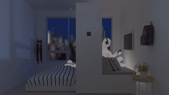 我们不会将家具尺寸变小,但是能在不同时候提供适当的功能。在睡觉的时候你不需要沙发,在使用衣柜的时候你往往不需要床。