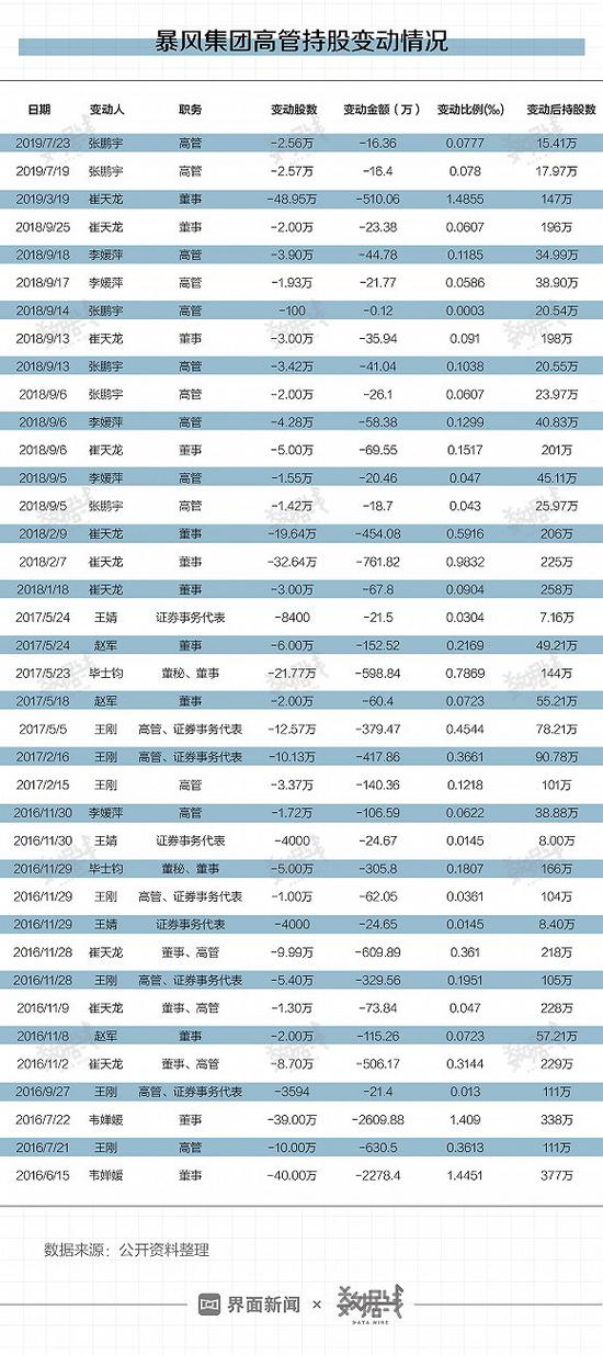 公开数据显示,暴风集团上市以来,公司董事、高管及证券事务代表累计减持38笔,未有一笔增持。董事、高管及证券事务代表减持共计319.78万股,套现金额达1.17亿元。