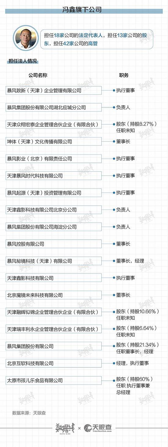 2007年,冯鑫创立暴风科技公司。天眼查数据显示,冯鑫目前担任18家公司法人,13家公司股东和42家公司高管。2019年以来,冯鑫担任负责人的暴风集团股份有限公司曾6次被北京和上海的法院列为失信被执行人。