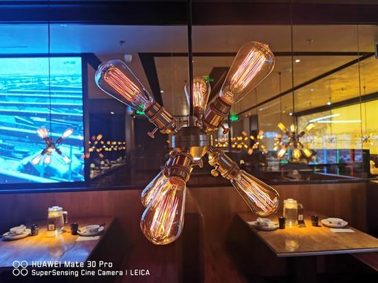 从样张分析,两款手机的成像保持了旗舰机该有的水准。在色彩表现上,Mate30 Pro色彩风格明显更讨人眼球,灯的金属质感很突出。iPhone 11 Pro灯丝的细节展现不错,但画面的色彩不太吸引人,毕竟拍的“好看”要比拍的真更加吸引人。