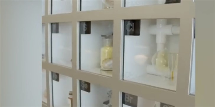 在这面墙上,盖茨将所有元素(不包括放射性元素)都用展示柜装了起来,并且按顺序排布,对此威尔史密斯表示十分叹服。