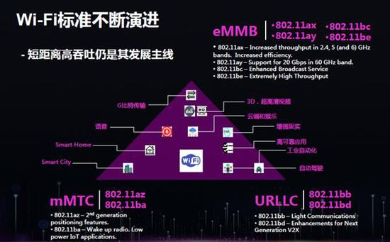 Wi-Fi能变得更加重要当然离不开Wi-Fi技术的演进。以前,Wi-Fi技术的标准都是用802.11 a/b/g/n/ac区分和表示,演进到802.11 ax的时候,为了让大家更容易区分,Wi-Fi联盟直接把最新一代的Wi-Fi技术标准802.11 ax简化为Wi-Fi 6,并将前两代技术802.11n和802.11ac分别更名为Wi-Fi 4和Wi-Fi 5。