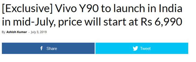 据91mobiles报道,91mobiles从零售消息来源获悉,vivo将于7月中旬在印度上市一款新机,型号为Y90。即将推出的Y90智能手机将是一款中低端产品,目标客户是那些购买手机预算低于10000印度卢比(约合人民币1000元)的人。