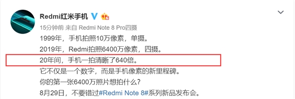 8月22日,红米手机官方为Note 8系列做预热: