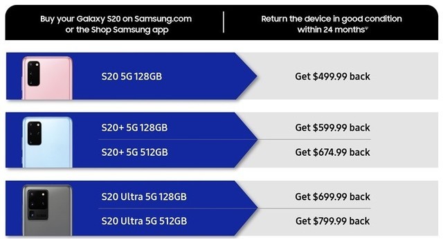 刚刚三星在海外推出了一项新的保证回购服务——“50%回购担保”,目的是让更多用户购买手机。具体内容为购买三星Galaxy S20系列手机使用两年后,还能将手机回收给三星公司,以此获得购机金额的50%退款。
