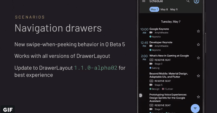 谷歌建议开发人员更新DrawerLayout以获得Android Q设备上的最佳体验,该方案有可能已经敲定,并与系统最终版本进入稳定通道,Android Q beta 5将在未来几周内发布,谷歌并没有透露Android Q正式版发布时间。