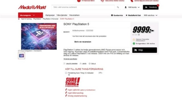 这家网站目前标注的价格是9999瑞典克朗(约合人民币7250元),不过这家网站并没有承诺可以在PS5发售的第一时间拿到机器,也就是说这个销售界面完全就是为了博眼球,很无聊。