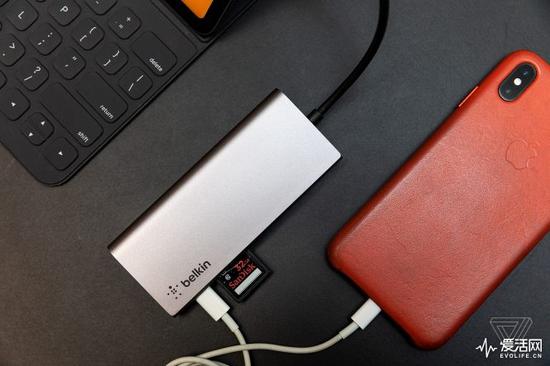 传统扩展坞由于不需要考虑与机身合体,在设计和性能上反倒鞥呢放开手脚。以贝尔金的扩展坞为例,两个USB Type-A的接口可以共享15W功率的输出,并且还能外接HDMI、SD读卡器并支持60W充电,甚至还包含一个RJ45上网口。