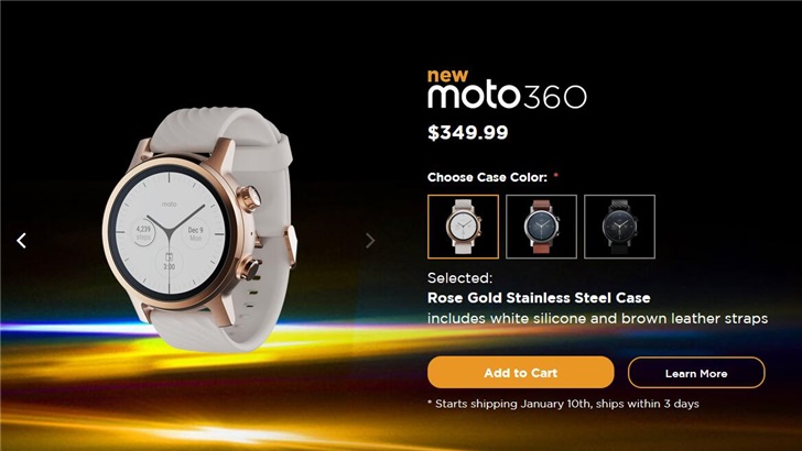 据slashgear和androidcentral报道,moto360官方网站消息,新款Moto 360智能手表已经开启预定,将于2020年1月开售发货,售价为349.99美元(约合人民币2460元)。