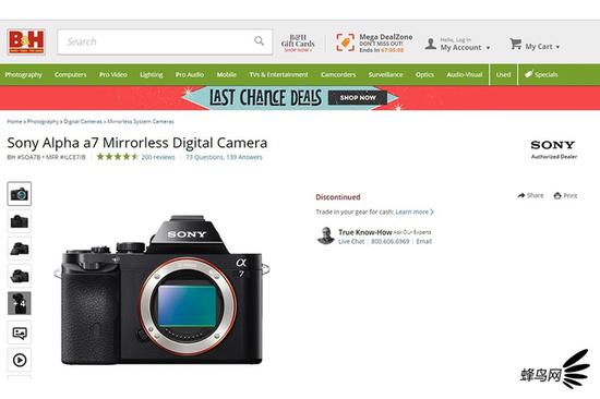 索尼中国官方商城提示α7S已售罄