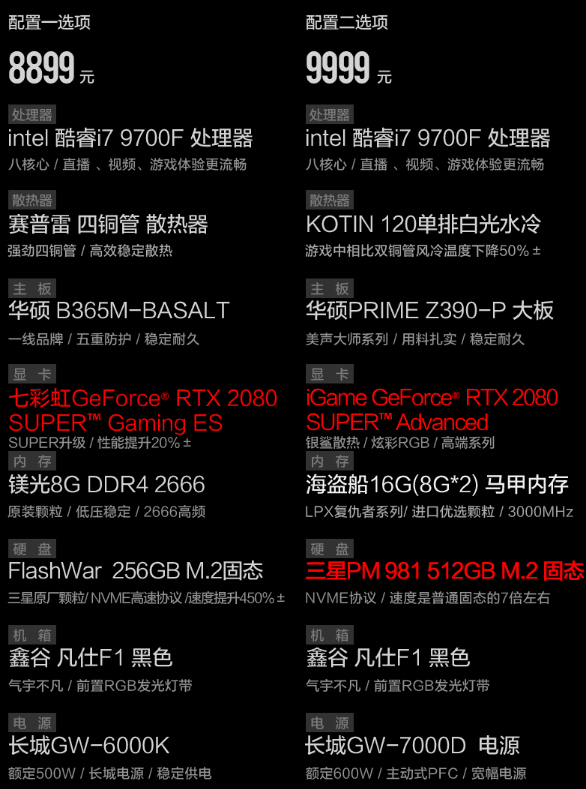 高端玩家的巅峰胜败往往就在一瞬间决定,就和武林高手过招一样,一招定胜负!而在实力相当的情况下,取胜除了靠运气,对决采用的武器也非常重要,而游戏对决的武器就是电脑主机,拥有一台性能强大稳定的主机或许就是高玩决战中取胜的关键性所在!推荐一款京天华盛8999游戏主机,作为一台高端定位的游戏主机,不论颜值还是性能,我相信它都能够满足你的游戏需求,定能让你的游戏体验有质的飞跃。目前这款主机已经全系升级16G(8G*2)双通道内存,以及RTX2080显卡,性能得到了大幅提升的同时做到到手价8899元。