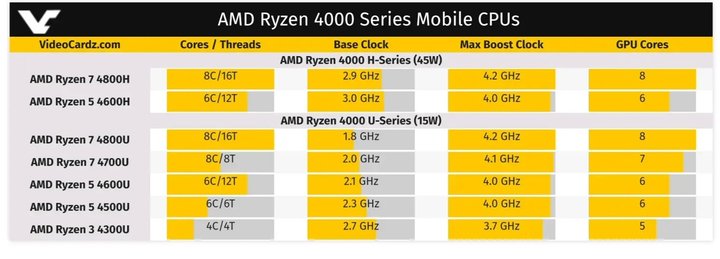 ▲ Ryzen 4000 系列型号、参数
