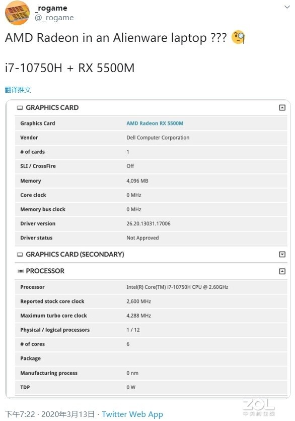 戴尔游戏本新品曝光:i7-10750H+RX5500M