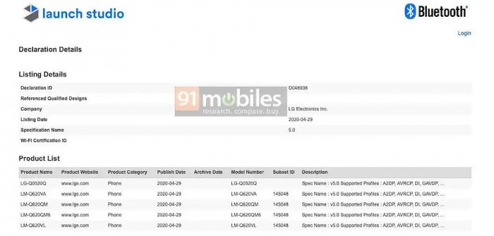 援引外媒91Mobile报道,型号为LG-Q0520Q的神秘手机已经获得了蓝牙SIG认证。在列表中还包括LM-Q620VA, LM-Q620QM, LM-Q620QM6, LM-Q620VL等型号,而这些型号都与去年的LG Q70有关。