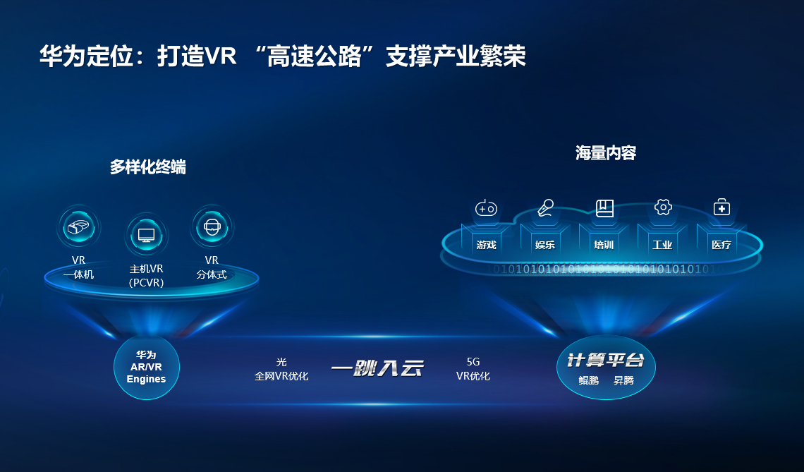 从二十年前的下载视频到现在的在线点播,未来VR内容的都会被放到云上。云端计算方面,华为推出的基于ARM架构的鲲鹏/昇腾计算平台,能够避免VR软件向云端移植带来的40%的性能损失,成为众多VR/AR应用端边云协同计算的有力支撑。