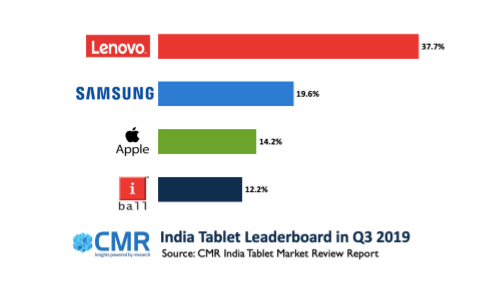 根据CMR 2019年第三季度平板电脑市场报告,印度平板电脑市场在第三季度同比增长了7.8%,联想、三星和苹果位居榜首。